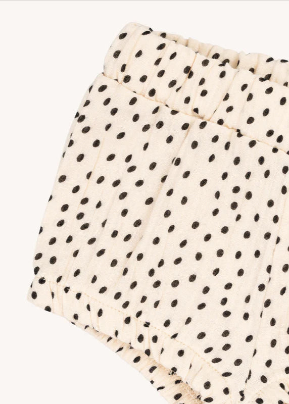 How cute are these baby bloomers with dots? Summer-ready in baby bloomers with Mini dots, these breathable and easy-to-wear organic cotton baby bottoms are perfect for revamping your baby's summer clothing. The "What I Like" collection features convenient snap buttons that make changing a breeze, ensuring your baby stays comfortable during their wardrobe journey. These baby bloomers have a snug fit that ranges from newborn to bigger baby sizes. Also, these organic cotton bloomers are made for sensitive and eczema prone skin.