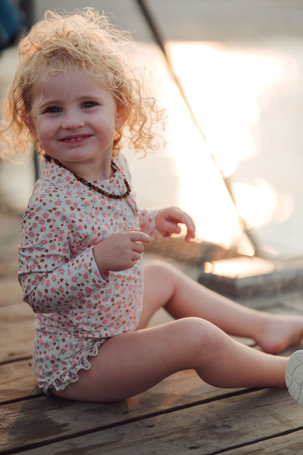 Dive into summer with our stylish and protective kids swimwear! Our long sleeve swimsuit boasts a trendy retro print and adorable ruffle accents, offering both fashion and enhanced sun protection. This girl swimsuit is crafted for maximum comfort while shielding your little one from the sun's rays. Explore our eco-friendly swimwear line to find the perfect beach attire for your child's summer adventures.