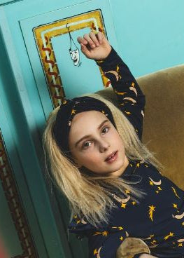 The organic cotton Starry Nights kids' headband from the Magic is Everywhere collection is a must-have for every girl's wardrobe, offering comfort and softness for everyday wear. Made out of velvet in dark blue colour with stars, perfect accessory to style with your outfit and keep your hair in order, made with organic cotton by CarlijnQ ( Netherlands). We love sustainable girls' accessories, especially when they add to their style.