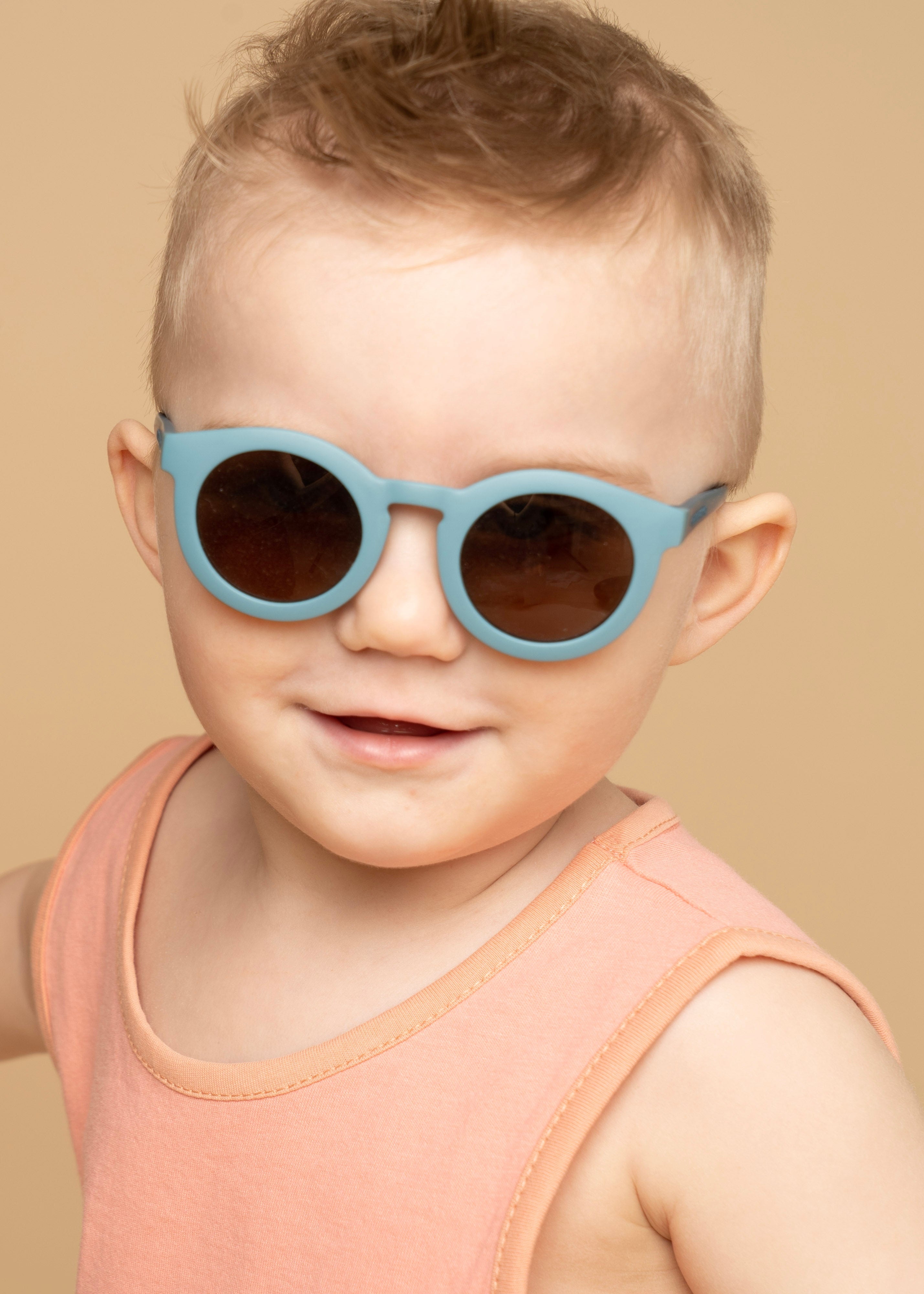 The new version of sustainable baby sunglasses in blue by Grech & Co is featured in an eco-friendly/non-toxic break resistant material - offering higher durability and longevity for use through its flexible form. Sustainable baby sunglasses from Grech & Co are the conscious choice for baby bendable sunglasses in stylish colours and with polarised lenses and with UV400 protection from the sun. These bendable sunglasses with rubber tips will ensure the easy hold.